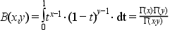 For small x and y the algorithm uses the expression in function of the gamma function, else it applies the exponential function onto the result of the betaln function provided with the DCDFLIB: Library of Fortran Routines for Cumulative Distribution Functions, Inverses, and Other Parameter (see cdfbet for more information about DCDFLIB).