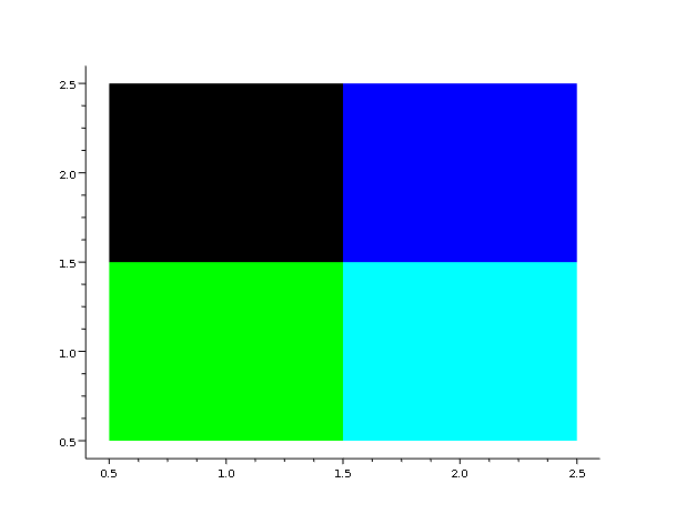 représentation d'une surface en 2D sous forme de couleurs interpolées